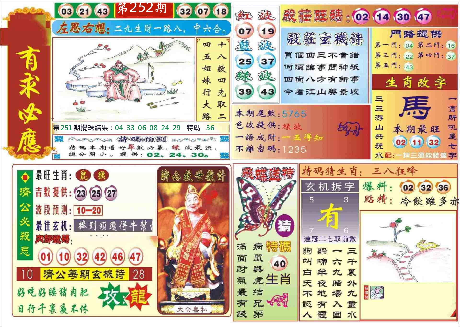新香港六合彩 第 2025252 期 開獎結果