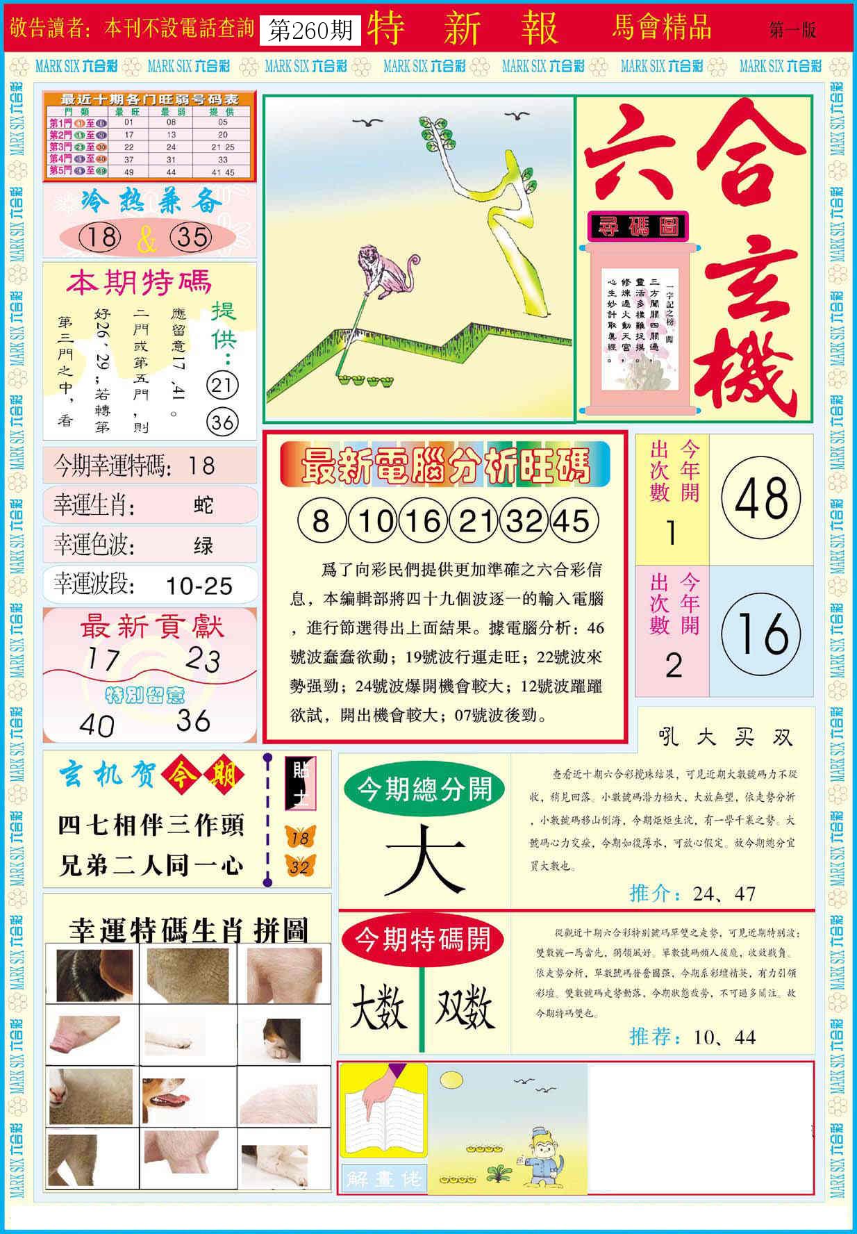 新香港六合彩 第 2025260 期 開獎結果