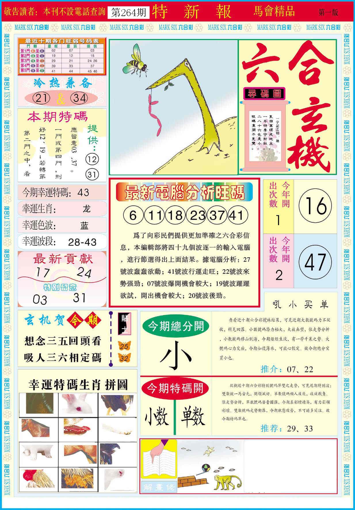 新香港六合彩 第 2025264 期 開獎結果