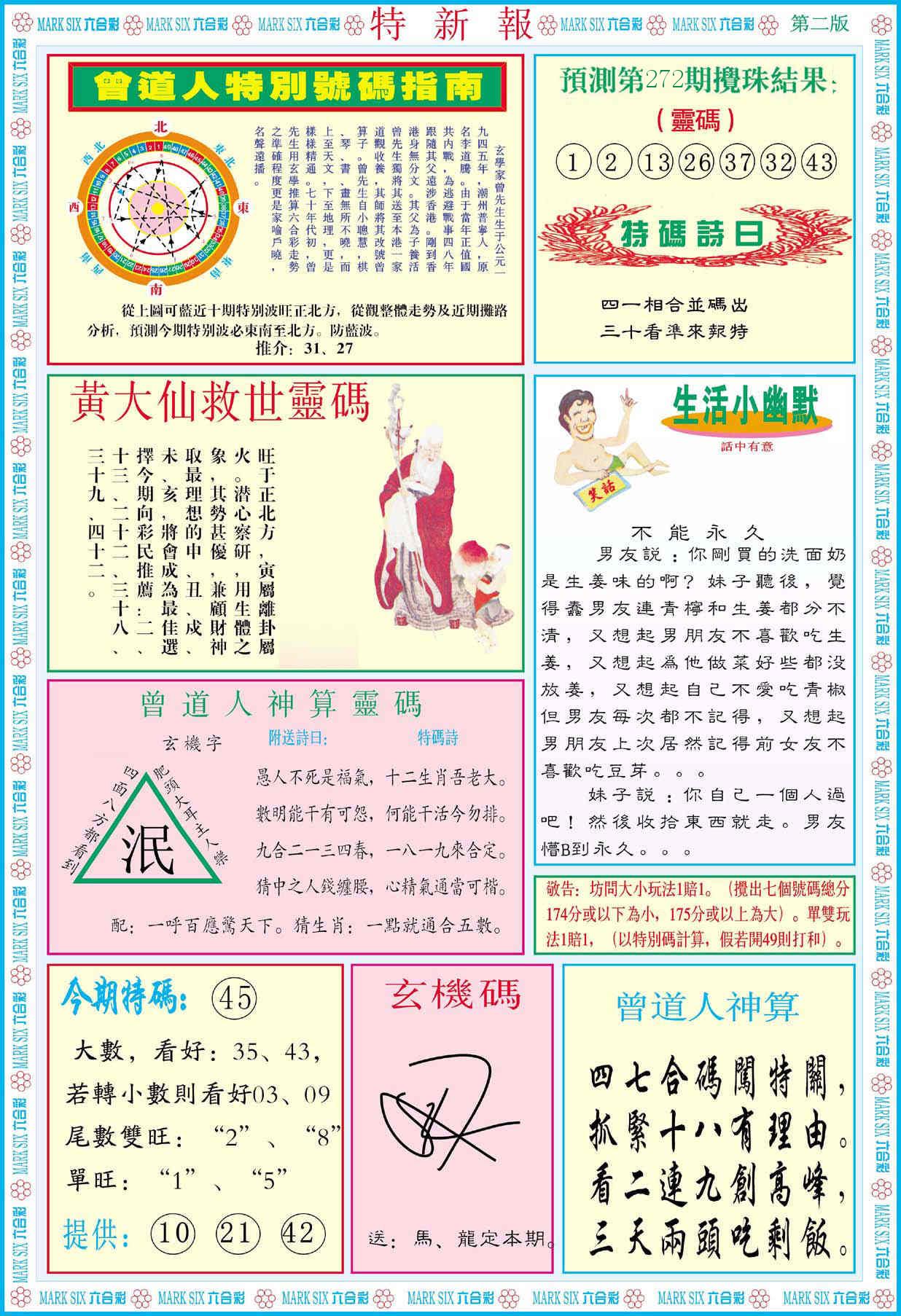 新香港六合彩 第 2025272 期 開獎結果