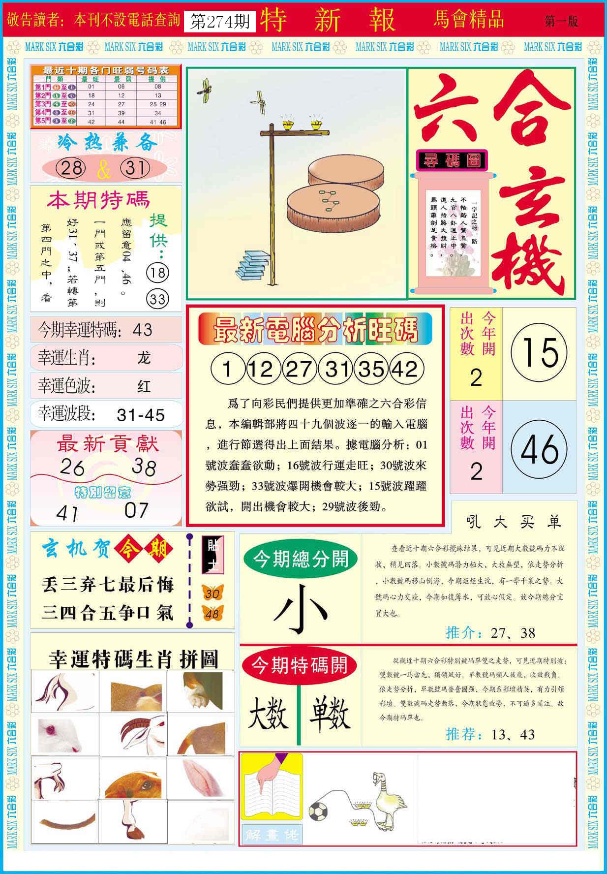 新香港六合彩 第 2025274 期 開獎結果
