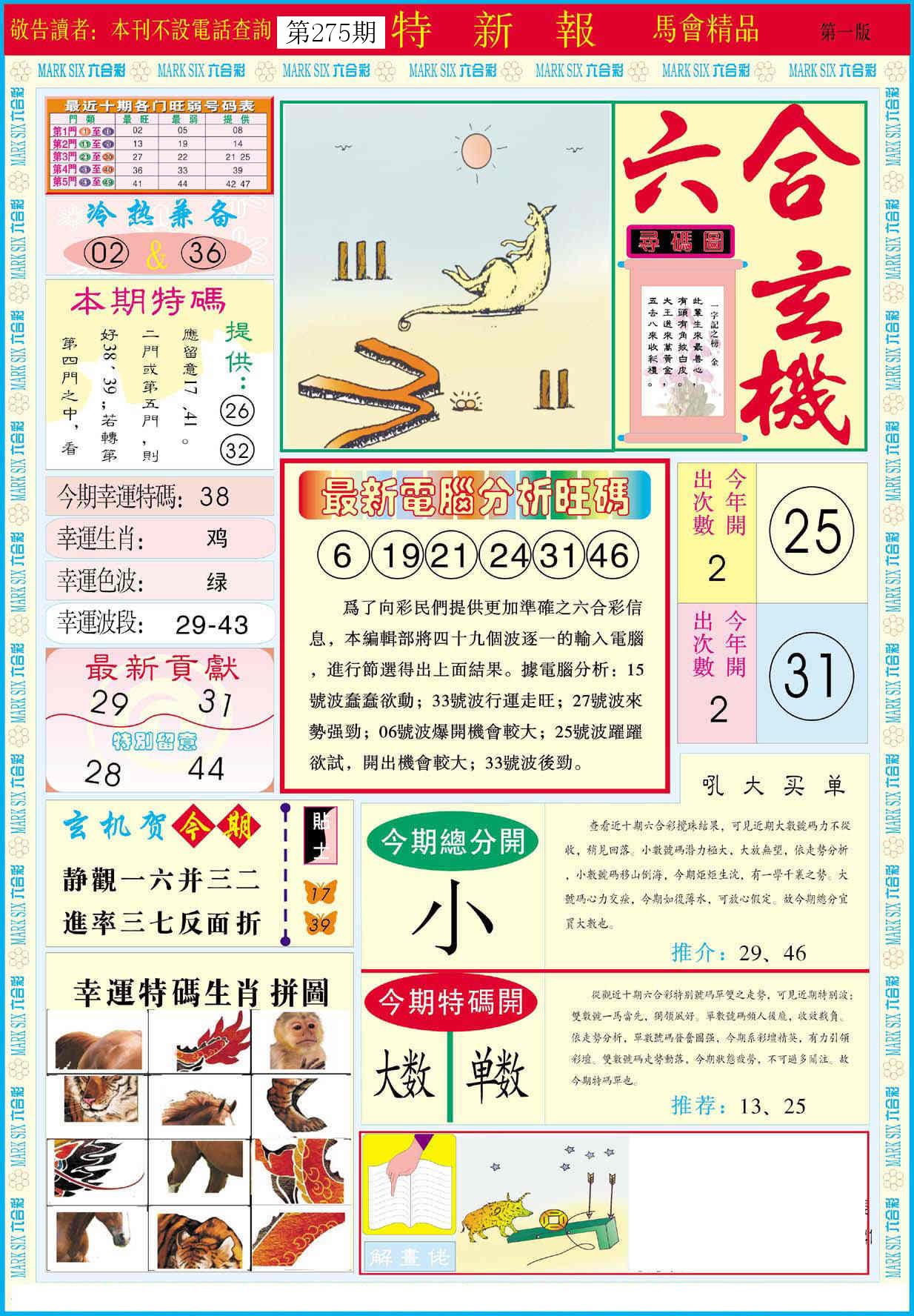 新香港六合彩 第 2025275 期 開獎結果