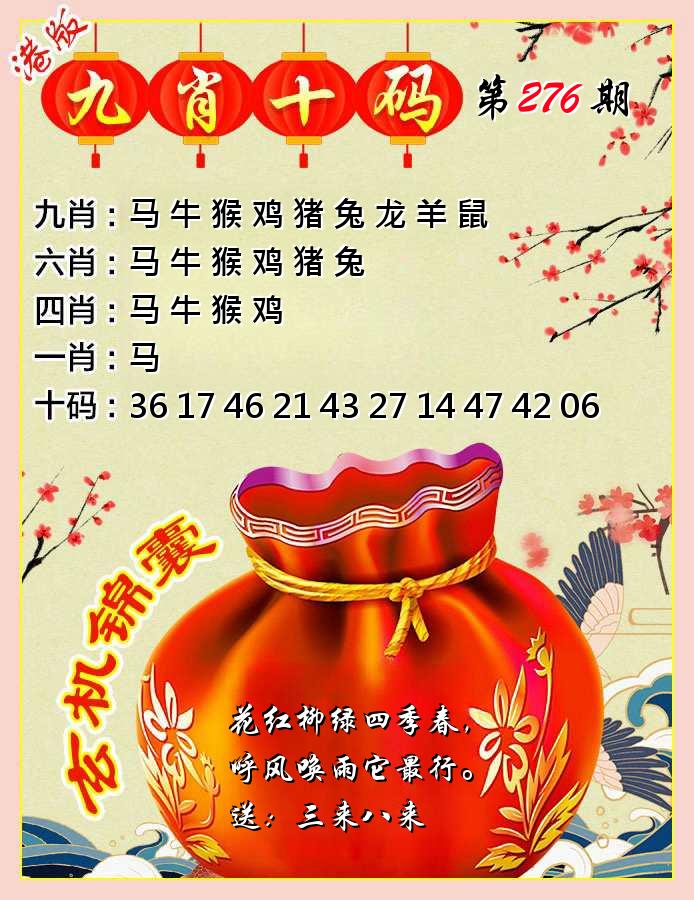 新香港六合彩 第 2025276 期 開獎結果