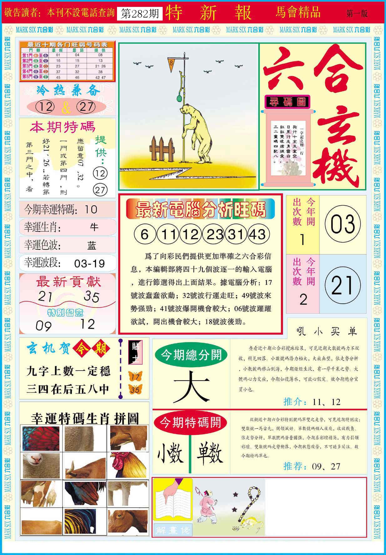 新香港六合彩 第 2025282 期 開獎結果