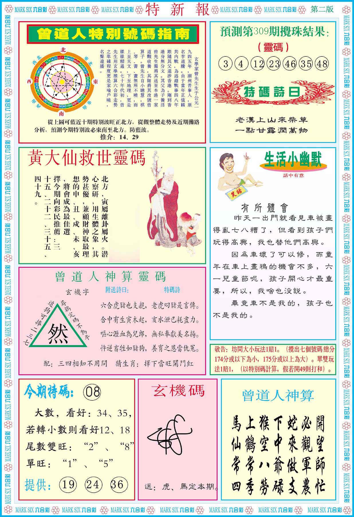 新香港六合彩 第 2025309 期 開獎結果