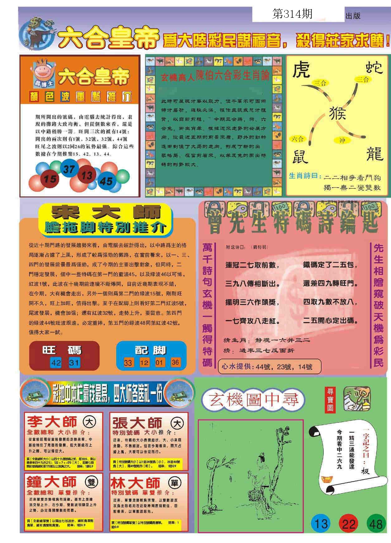 新香港六合彩 第 2025314 期 開獎結果
