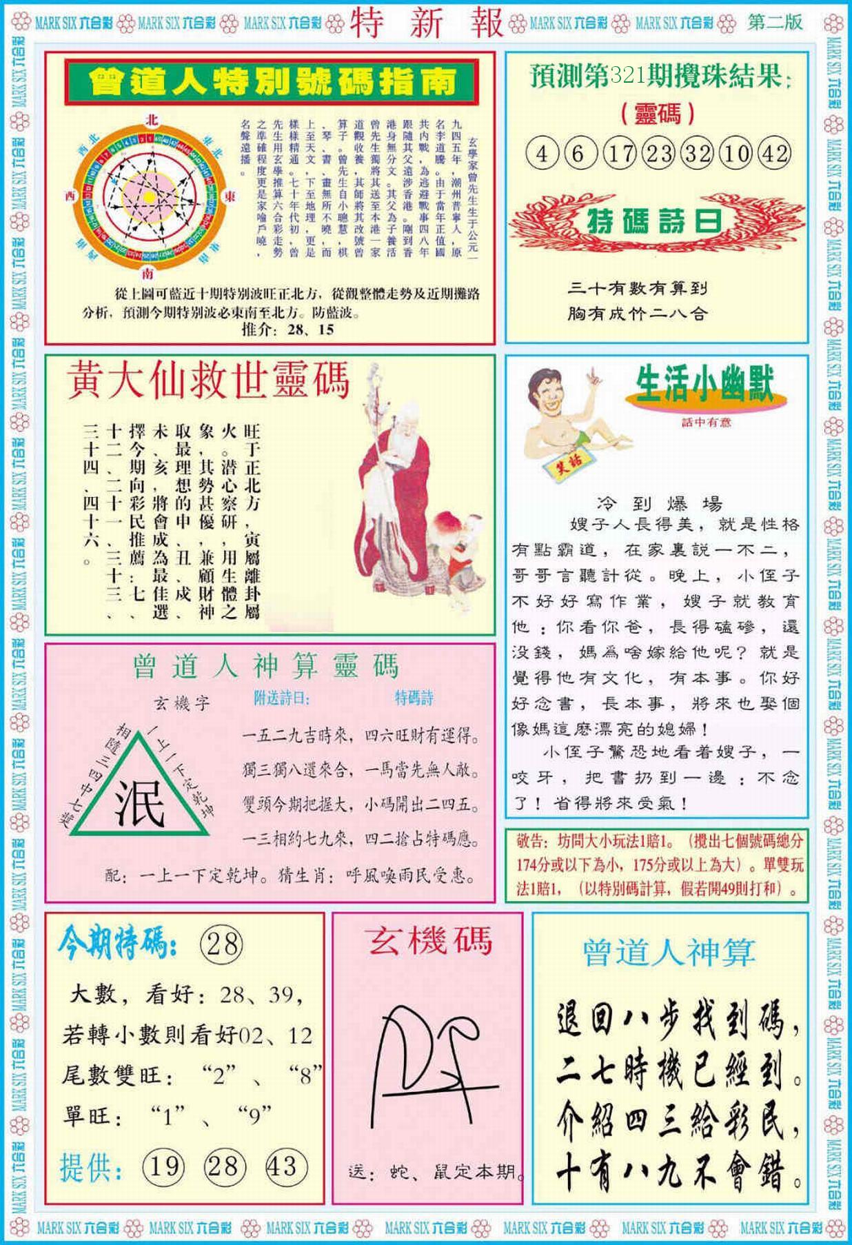 新香港六合彩 第 2025321 期 開獎結果