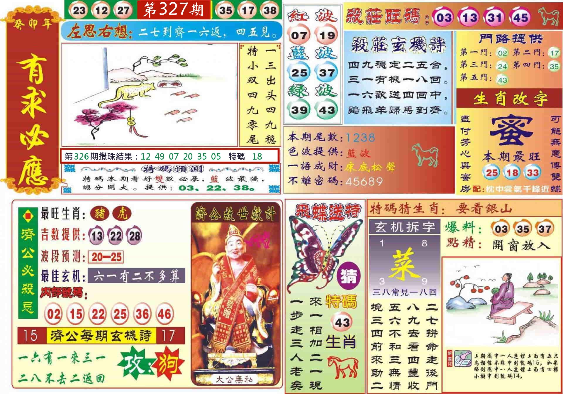 新香港六合彩 第 2025327 期 開獎結果